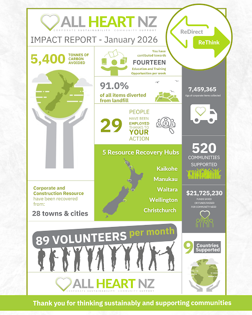 Every job is followed up with an Impact Report which details the positive social and environmental impact of using All Heart NZ rather than sending items to landfill.